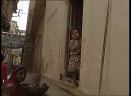 Thru door - house with woman and children pan R to other houses