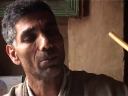 Mid shot of Ghulam smoking Huckka. He takes time before answering the question and takes a deep drag of tobacco.